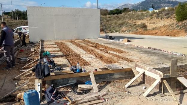 Σήμερα 21/12/020 Δευτέρα 14:00 το εργολαβικό συνεργείο με ταχύτατους ρυθμούς έχει καλουπώσει και έχει σιδερώσει μετά από εκσκαφή και ετοιμάζεται να ρίξει μπετά στη ΡΑΜΠΑ που θα γίνονται οι επισκευές και τα service των λεωφορείων, ενώ αργότερα θα συμπληρωθούν «και άλλες υποδομές». Θυμηθείτε την Ανακοίνωση στην ιστοσελίδα του Δήμου: