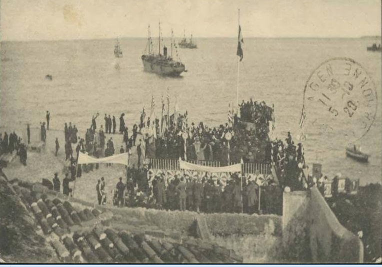 Νησίδα Σούδα 1/14 Φλεβάρη 1913. Άφιξη Γενικού Διοικητή Κρήτης Στέφανου Δραγούμη για την υποστολή της τουρκικής σημαίας.