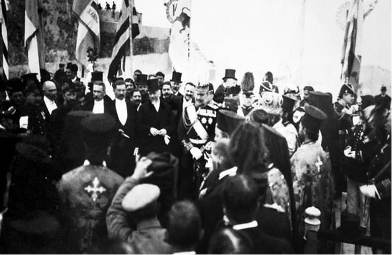 Χανιά, 1/12/1913. Ο Βασιλιάς της Ελλάδας Κωνσταντίνος Α’ κατά την τελετή της Ένωσης της Κρήτης με την Ελλάδα.