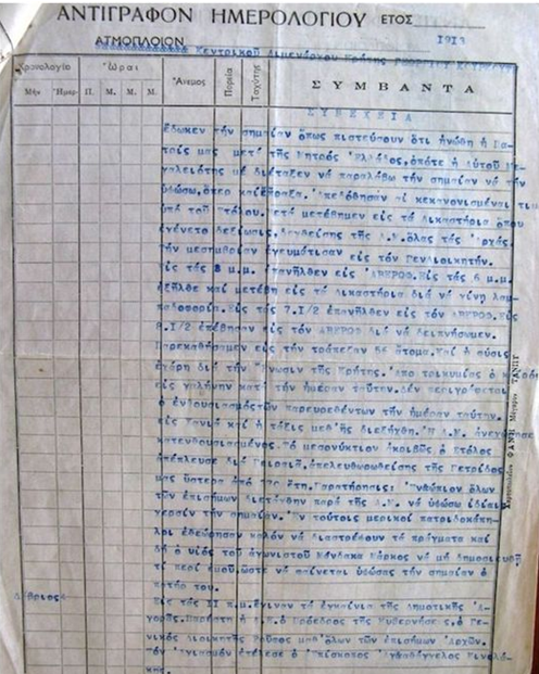 Κεντρικό Λιμεναρχείο Χανίων. Βιβλίο Συμβάντων 1 Δεκέμβρη 1913. Ποιος ύψωσε την Ελληνική σημαία στο Φιρκά;