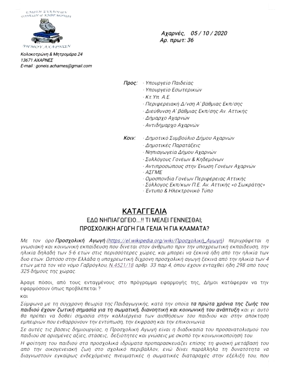 Ένωση Γονέων και Κηδεμόνων Δήμου Αχαρνών: Η Παιδεία νοσεί για ακόμα μια χρονιά – Απαιτούμε μόρφωση – υγιεινή – ασφάλεια, σε όλα τα σχολεία Υποβολή σχολίου Συνέχεια →